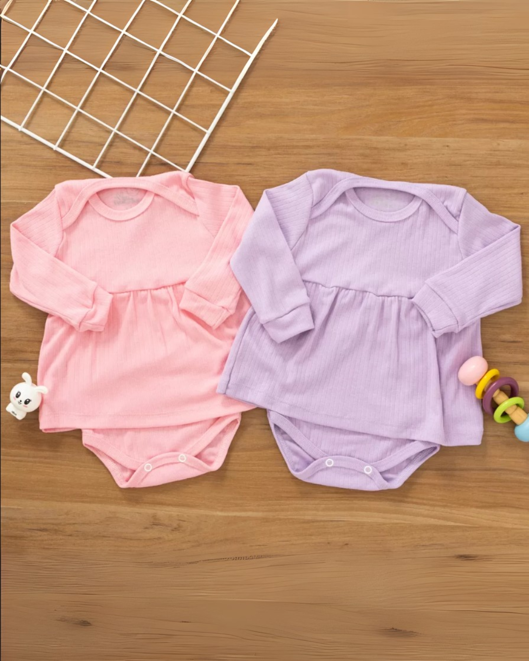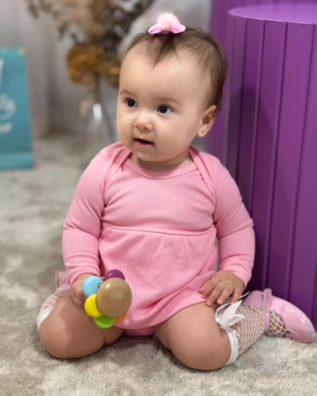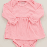 Confeccionado em canelado 100% algodão, nosso vestido é macio e respirável, ideal para a pele sensível dos bebês. O body por baixo proporciona maior segurança e conforto, além de facilitar as trocas de fralda.