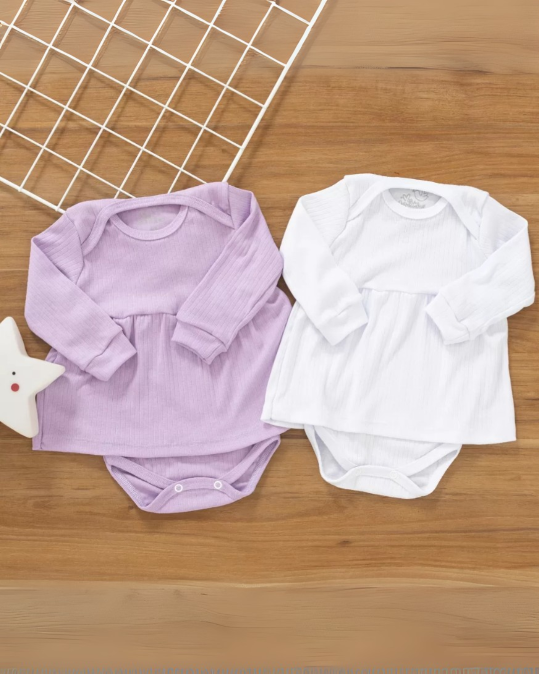 Kit 2 Body Vestido Bebê Canelado Inverno Confort Premium
