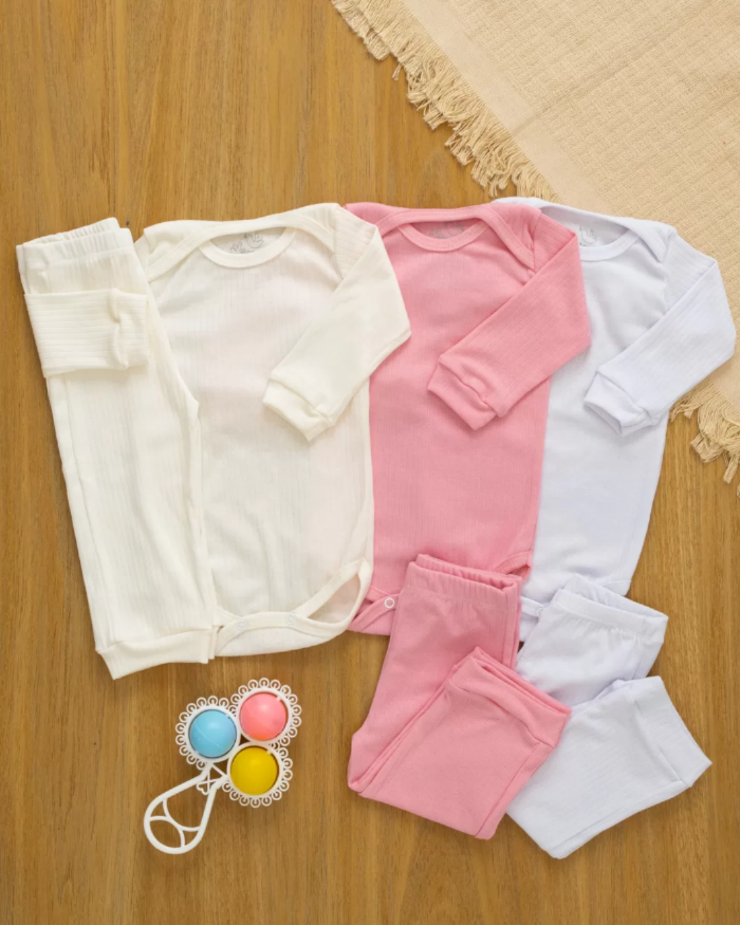 Kit 6 peças Bebê Body e Calça Canelado Confort Premium