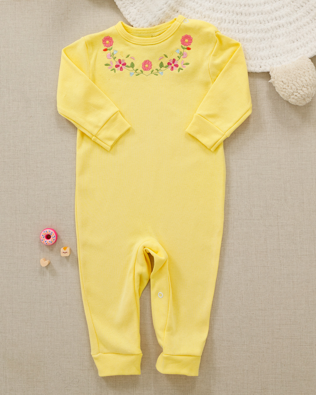 Tecido Super confortável em malha Suedine 100% Algodão, abertura com botão de pressão, facilitando assim na hora de vestir. Bordado super Lindo de Flores. Diversão e conforto para o seu Bebê. Lembrando que nossos Bordados Possuem proteção interna para não agredir a pele de seu Bebê.