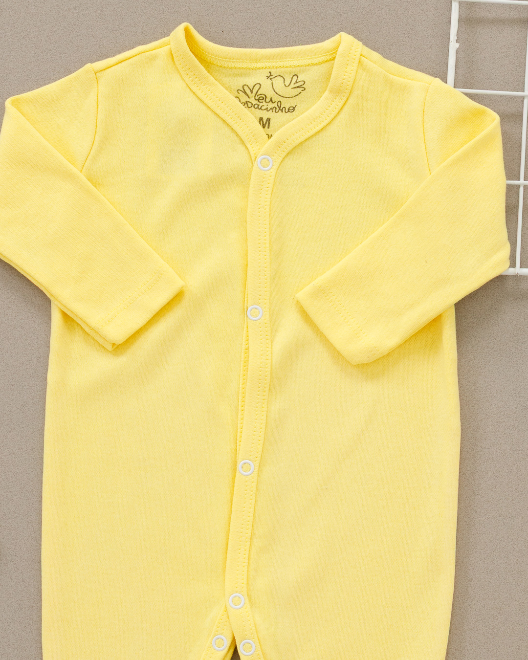 Macacão Bebê Suedine Básico Amarelo com Pezinho